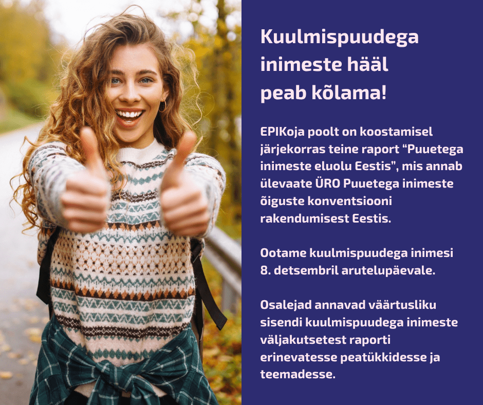 Ootame teemast huvitatud kuulmispuudega inimest 8.detsembril arutelupäevale! Osalejad annavad väärtusliku sisendi kuulmispuudega inimeste väljakutsetest erinevatesse peatükkidesse ja teemadesse.
