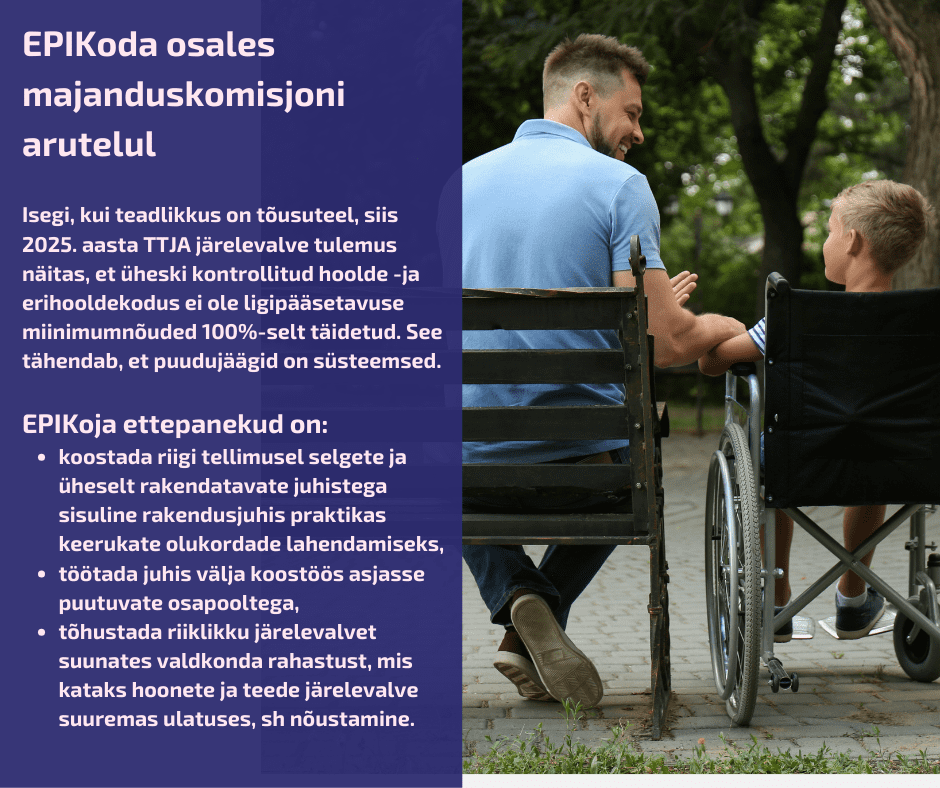 Kohtumisel juhiti tähelepanu, et uus määrus „Ehitiste ligipääsetavus“ puudutab kogu elanikkonda elukaareüleselt. EPIKoja seisukoht on, et puuetega inimestele mõeldud lahendused sageli avalikus ruumis ei rakendu või rakenduvad osaliselt, mis aga ei taga iseseisvat ligipääsu, sh hoonete ja teede kasutamist. Oluline on, et need, keda lahendused kõige enam mõjutama hakkavad (puuetega inimesed), oleksid lahendusettepanekud heaks kiitnud ning et avaliku ruumi valikud toetaksid liikumist päriselt, mitte ei looks takistusi juurde. EPIKoja seisukoht on, et kasusaajad peavad olema planeerimisprotsessis osa, sest kontekst dikteerib võimalikud lahendused ning puuetega inimesed peavad osalema nii vajaduste kaardistamise- kui järeltestimise protsessidesse aktiivselt ja sisuliselt kaasatud.