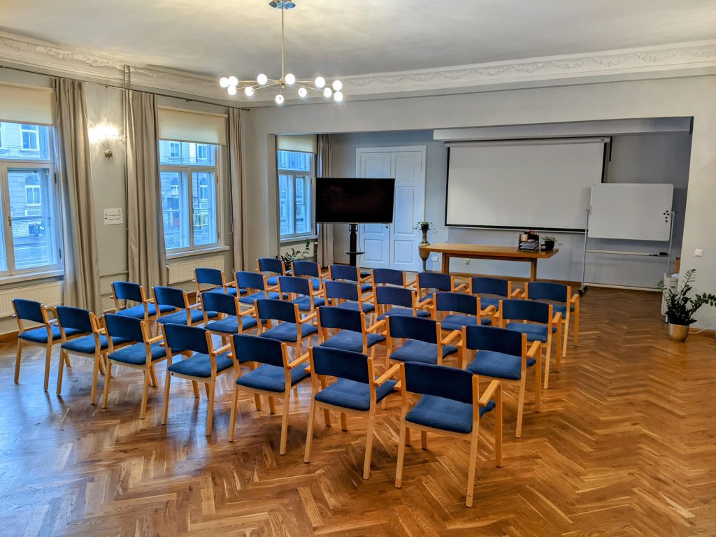 Suurde saali (84,0 m²) mahub olenevalt mööbli paigutusest umbes 50 inimest.