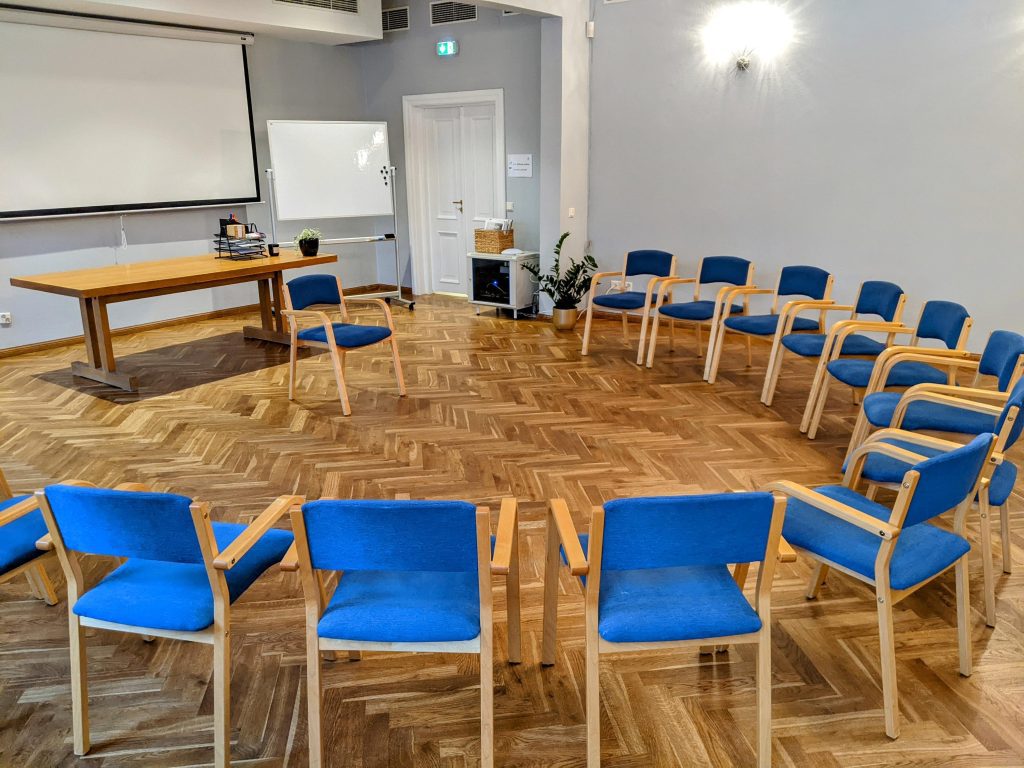 Väikesesse saali (42 m²) mahub olenevalt mööbli paigutusest umbes 20 inimest.